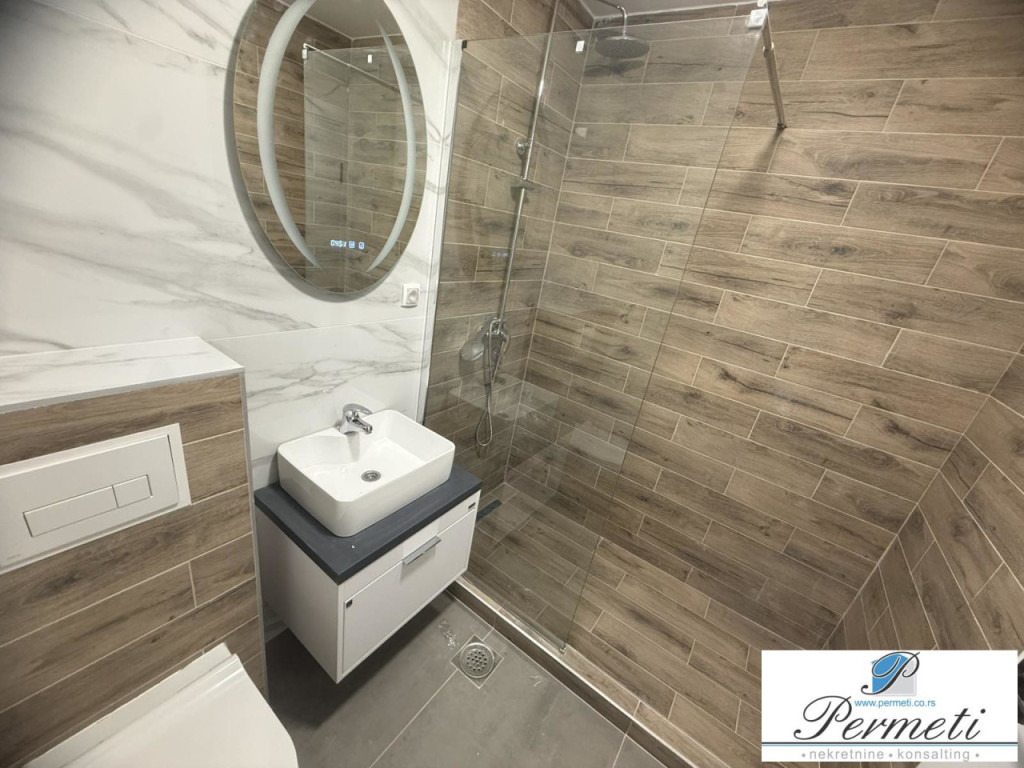 Stan se sastoji od ulaznog hodnika, zasebnog toaleta, dnevne sobe povezane sa trpezarijom i kuhinjom, iz koje se izlazi na terasu, dve spavaće sobe, kao i kupatila sa tuš kabinom. Prostor je dobro organizovan i maksimalno iskorišćen.